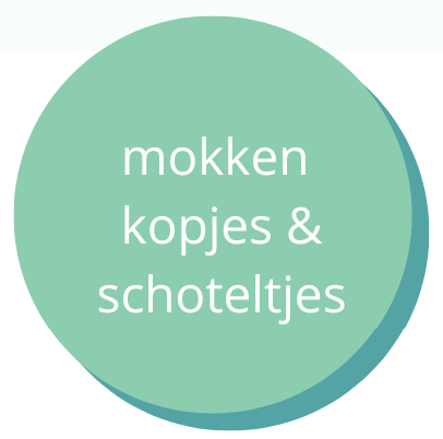 Inmiddels heb ik een stelling vol met mooie mokken, kopjes, bordjes en schaaltjes.